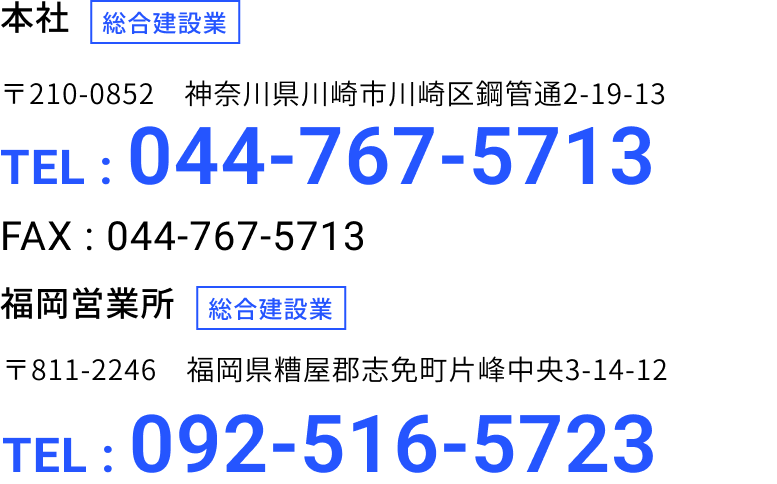 弊社は神奈川県川崎市に拠点を置き、マンション、アパート等の共同住宅をはじめとする各種建物の建設一式工事全般を手がけております。